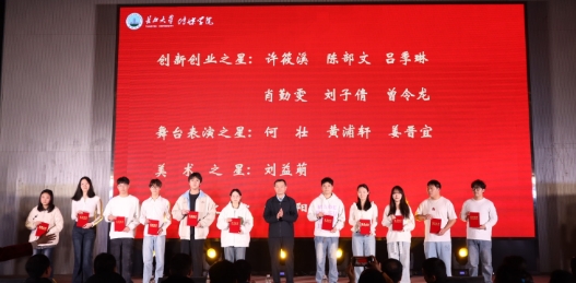 颁奖环节中,学院围绕“正三风,树三观,成三才”的育人理念,对在创新创业、舞台表演、美术创作、新媒体、志愿服务、优秀学干、优秀班级、优秀寝室建设等方面表现突出的集体或个人予以表彰。校领导和相关职能部门负责人依次为“三才学子”获奖个人和集体代表颁奖,激励广大学生奋发有为。
