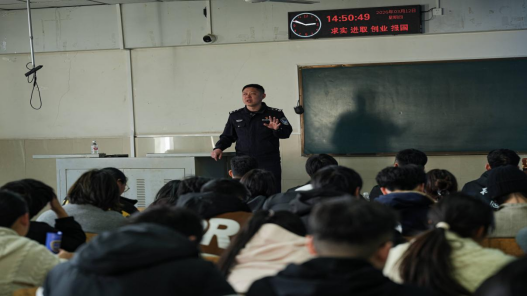 (通讯员:方思侨 摄影:李昊)2026年3月12日下午,长江大学传媒学院在东校区教学楼内开展“戎光相伴青春行,警校共筑防诈堤”主题活动,御路口派出所携手“戎光”志愿服务队走进长江大学东校区,以反诈宣传为主题的 “开学第一课” 正式开讲,为在校学生筑牢校园反诈安全防线。